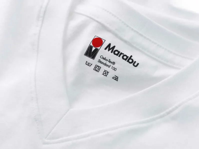 Presque tous les vêtements sont munis d’une étiquette de lavage au niveau du cou ou dans la couture latérale. La technique la plus récente pour fournir ces instructions de lavage et ce marquage consiste à les imprimer par tampographie. Cet imprimé peut être positionné dans le col d’un T-shirt par exemple. L’étiquette de lavage deviendra inutile grâce à cette impression. Des casquettes, des pantalons et des chaussures peuvent également être imprimés. Les semelles intérieures et les chiffons pour lunettes peuvent également être imprimés par tampographie.