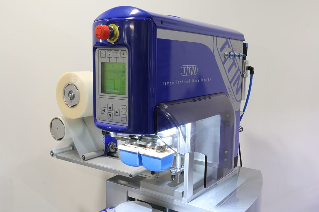 Un moyen très efficace de nettoyer les tampons pendant l’impression consiste à utiliser du ruban adhésif. Cela se fait souvent manuellement. Nous offrons également la possibilité de nettoyer les tampons avec un nettoyant pour ruban adhésif. Sur toutes les machines TTN Next Generation, nous pouvons fournir une unité de nettoyage de bande. Les réglages du nettoyeur de ruban sont effectués par le panneau de commande de la machine de tampographie. De là, il est possible de définir l’intervalle dans lequel le nettoyage doit être effectué, par exemple après chaque 5ème impression. Après chaque cycle de nettoyage, l’appareil passera un autre morceau de ruban adhésif propre pour le prochain cycle de nettoyage. La longueur de cette bande peut être ajustée.
